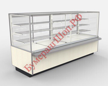 - Тип витрины. Вертикальная витрина с вращающимися или стационарными полками обычно предназначена для кафе и ресторанов; горизонтальная – для магазинов и пекарен; витрины без стекла обычно приобретают в супермаркеты. Есть также неохлаждаемые витрины для выпечки.
