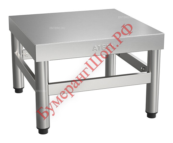 Подставка ATESY ПКИ-П-1200.500.280-02 серии Престиж используется на предприятиях общественного питания и торговли для установки различного кухонного оборудования и инвентаря. Столешница и обвязка выполнены из нержавеющей стали AISI 430 толщиной 0,8 мм, ножки - из круглой трубы 40х40 мм из нержавеющей стали AISI 201.