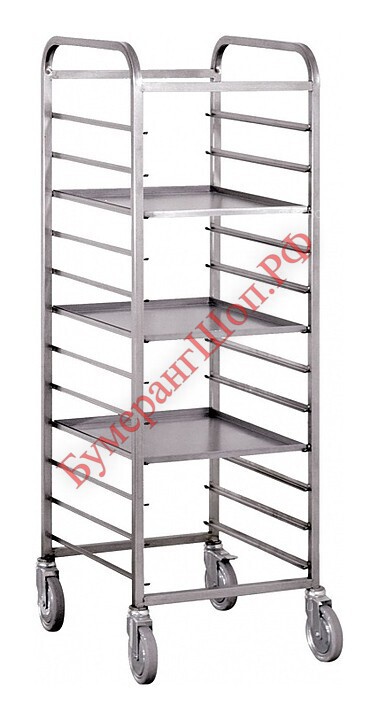 Шпилька представляет собой сварную рамно-стеллажную конструкцию, содержащую в себе несколько уровней направляющих, на которые могут быть установлены противни и поддоны. Каркас изделия выполнен из трубы квадратного сечения.