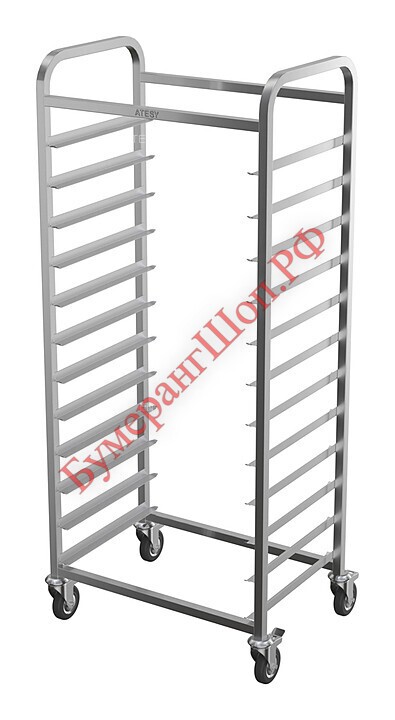 Тележка-шпилька ATESY КШ-Л-1.12-600.400-02 серии Люкс используется на предприятиях общественного питания и торговли для транспортировки и хранения противней. Модель оснащена 4 поворотными колесами, 2 из которых снабжены тормозными устройствами. Сварная конструкция полностью выполнена из нержавеющей стали AISI 304.