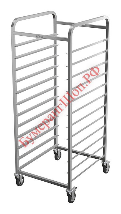 Тележка-шпилька ATESY КШ-С-1.12-2.1-02 серии Стандарт используется на предприятиях общественного питания и торговли для транспортировки и хранения гастроемкостей. Модель оснащена 4 поворотными колесами, 2 из которых снабжены тормозными устройствами. Разборная конструкция полностью выполнена из нержавеющей стали AISI 304.