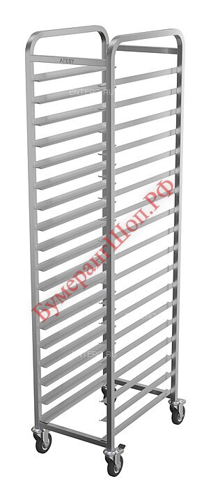 Тележка-шпилька ATESY КШ-С-1.18-470.580-02 серии Стандарт используется на предприятиях общественного питания и торговли для транспортировки и хранения противней. Модель оснащена 4 поворотными колесами, 2 из которых снабжены тормозными устройствами. Разборная конструкция полностью выполнена из нержавеющей стали AISI 304.