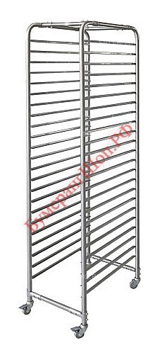 Тележка-шпилька ITERMA СТР 32Ш-605 Ш430 используется на предприятиях общественного питания и торговли для временного хранения и транспортировки полуфабрикатов и готовой продукции. Модель оснащена 4 прорезиненными поворотными колесами, 2 из которых оборудованы тормозами. Конструкция выполнена из нержавеющей стали.