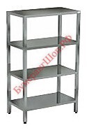 Стеллаж Кобор СКТ-120/50 предназначен для хранения посуды, кухонной утвари и сухих продуктов на предприятиях общественного питания, торговли и в промышленно-производственных помещениях. Каркас выполнен в виде уголка 40х40 мм из оцинкованной стали, полки - из нержавеющей стали AISI 430. Сварная конструкция обеспечивает жёсткость стеллажа.