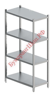 Кухонный стеллаж СкайТек СТ4 15/6/18 Р предназначен для хранения посуды, инвентаря и сухих пищевых продуктов на предприятиях общественного питания и торговли. Конструкция выполнена из нержавеющей стали AISI 430 толщиной 1 мм, каркас - из профиля 40х20 мм.
