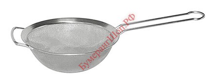 Дуршлаг-сетка MVQ 1160STN используется на предприятиях общественного питания и торговли, в частных домах и квартирах для просеивания сыпучих продуктов, а также для промывки ягод, фруктов, овощей, грибов и других продуктов в проточной воде. Изделие оснащено удобной длинной ручкой и выступом для крепления на кастрюлях и котлах.