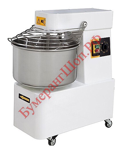 Крышка оборудована предохранительным микровыключателем. Управление тестомесом происходит с помощью электромеханической панели. Корпус выполнен из окрашенной стали.