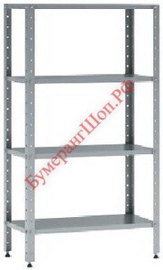 Полки и ножки с опорами регулируются по высоте. Полки усилены продольным ребром жесткости (крепится ко дну полки) для увеличения нагрузки. Конструкция разборная.