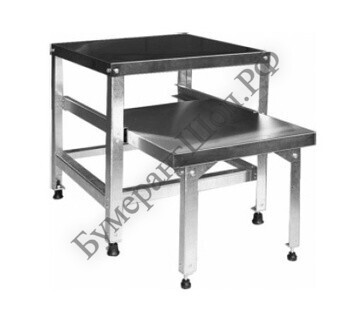 Подставка ПЭО предназначена установки на электромеханического оборудования (например, мясорубки или овощерезки). Конструкция содержит выдвижную полку 400х450 мм, предназначенную для установки гастроемкости объемом 30-40 литров, что позволяет значительно сэкономить рабочее пространство и сделать работу более удобной. Материал подставки: оцинкованная сталь (каркас), нержавеющая сталь (столешница). Ножки с опорами регулируются по высоте.