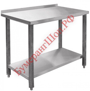 Стол пристенный с бортом СПРП-6-6 (каркас с полкой - нерж.)