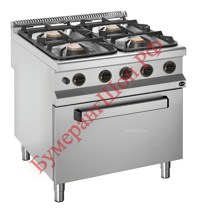 Газовая плита Apach APRG-89FG 900-й серии предназначена для приготовления различных блюд из мяса, птицы, рыбы и овощей в наплитной посуде на предприятиях общественного питания и торговли. Модель оснащена электромеханической панелью управления, гидроизолированной прессованной поверхностью и регулируемыми по высоте ножками. Корпус, рабочая поверхность, панель управления и вытяжная решетка выполнены из нержавеющей стали AISI 304, боковые и задняя панели - из нержавеющей стали AISI 430, решетки выполнены из чугуна, горелки - из эмалированного чугуна, распределительные головки - из латуни.