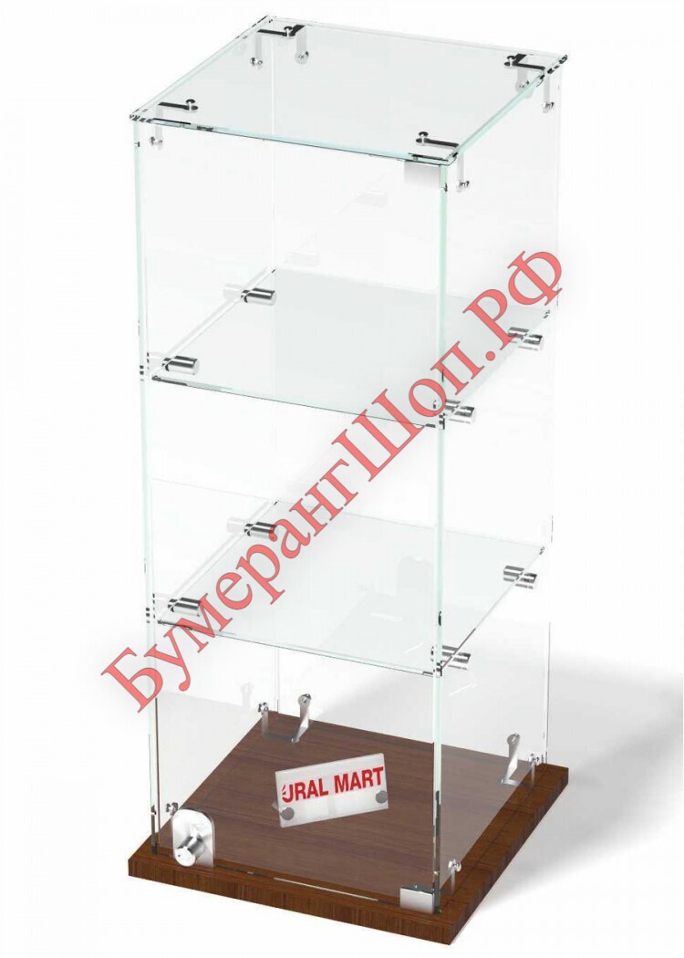 Материал основания - ламинированная ДСП (толщина - 16 мм). Кромка из ПВХ имеет толщину 0,5 мм. Есть возможность выбрать расцветку основания. Витрина может быть изготовлена по индивидуальным размерам.